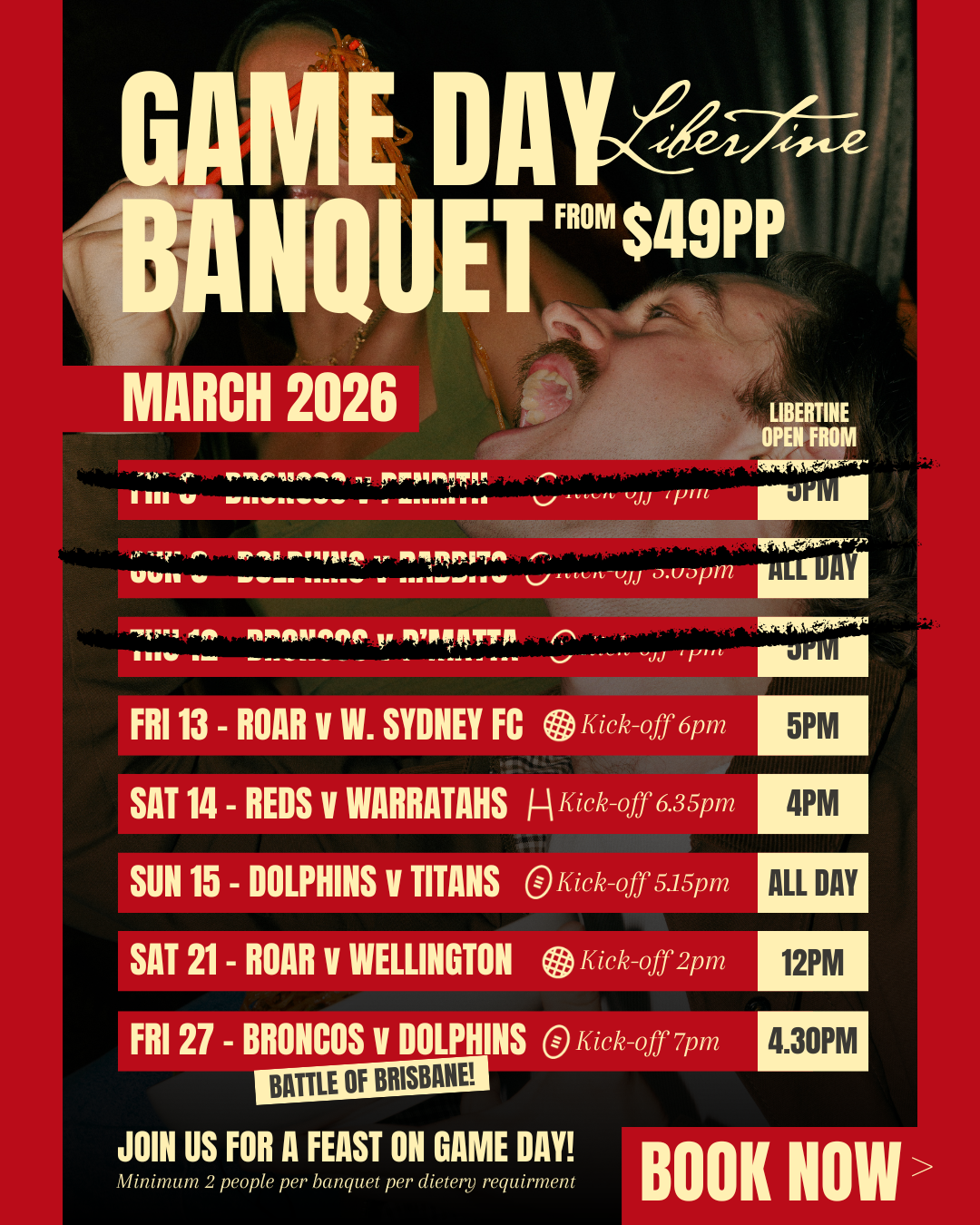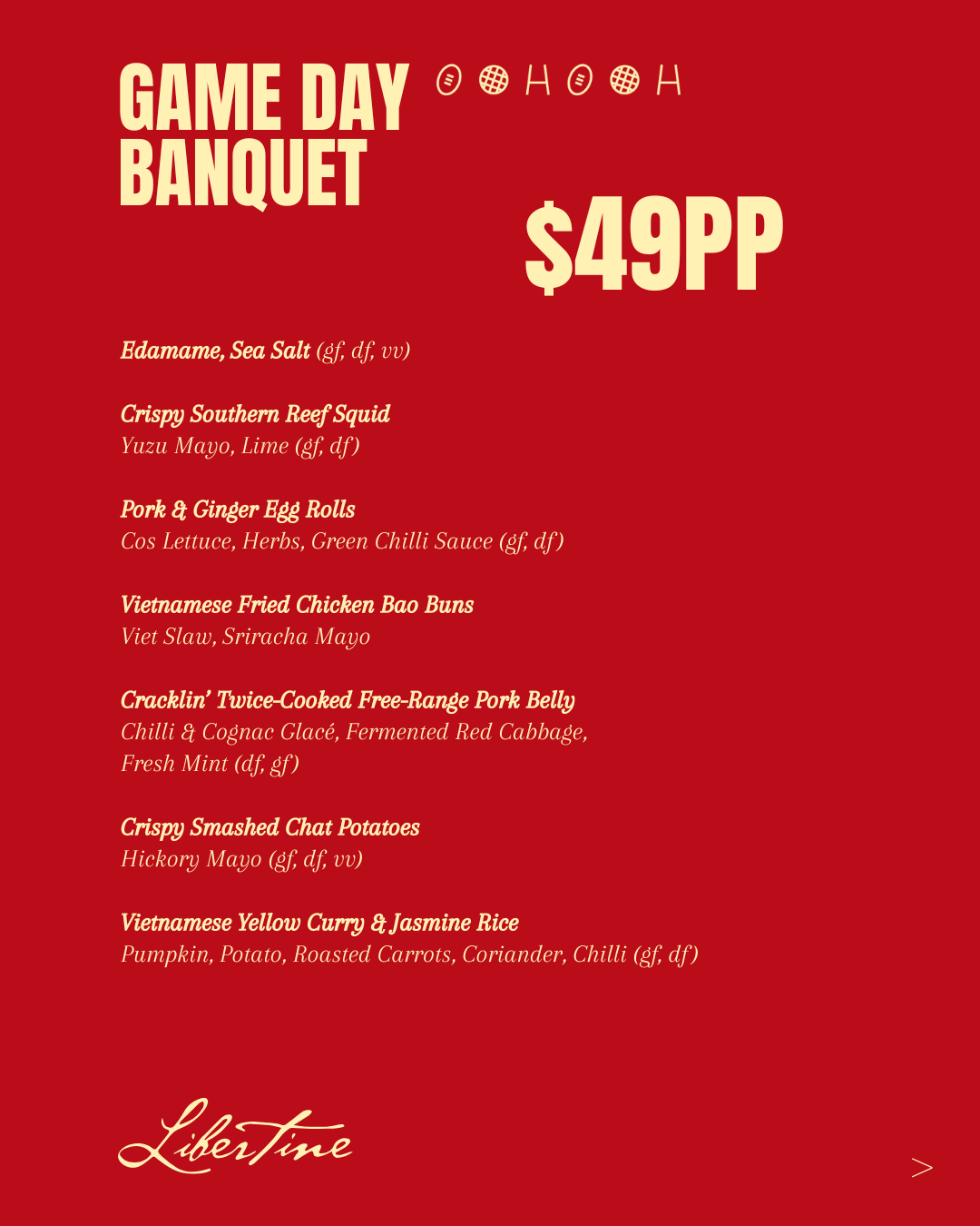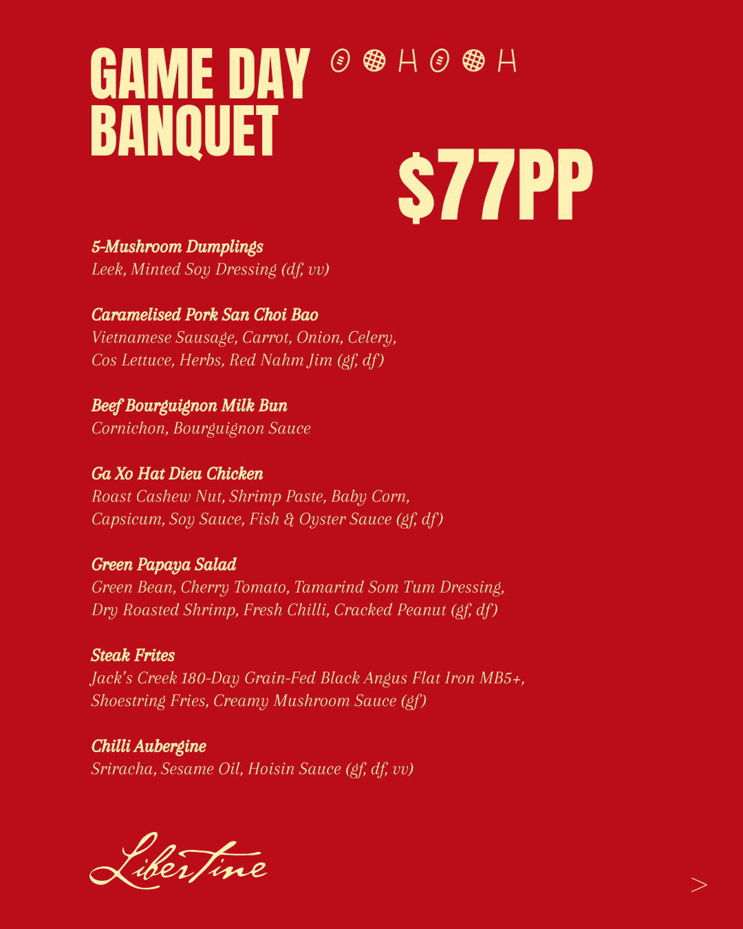Game Day Banquet at Libertine from $49pp